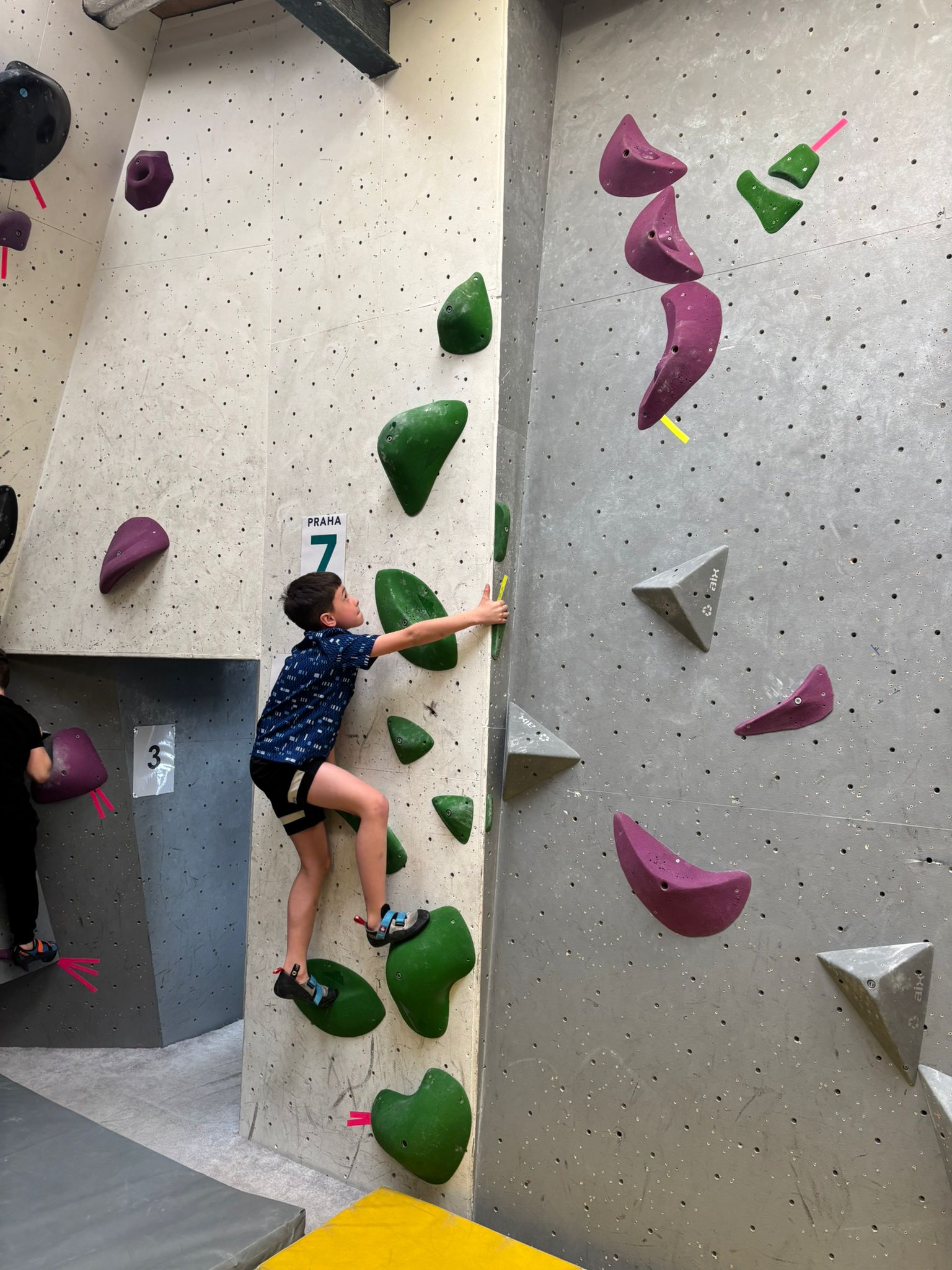 Pro část výpravy to nebyly jen další závody v kalendáři – pro některé děti šlo vůbec o první závodní zkušenost mimo naši domácí stěnu. To s sebou přineslo velkou dávku očekávání, ale také přirozené nervozity. Děti se učily zvládat závodní stres, pracovat s nervozitou před pokusem a hledat v sobě odvahu nevzdávat se ani ve chvíli, kdy se boulder nepodařil na první pokus. O to větší radost pak přinášely chvíle, kdy se podařilo problém nakonec vyřešit.